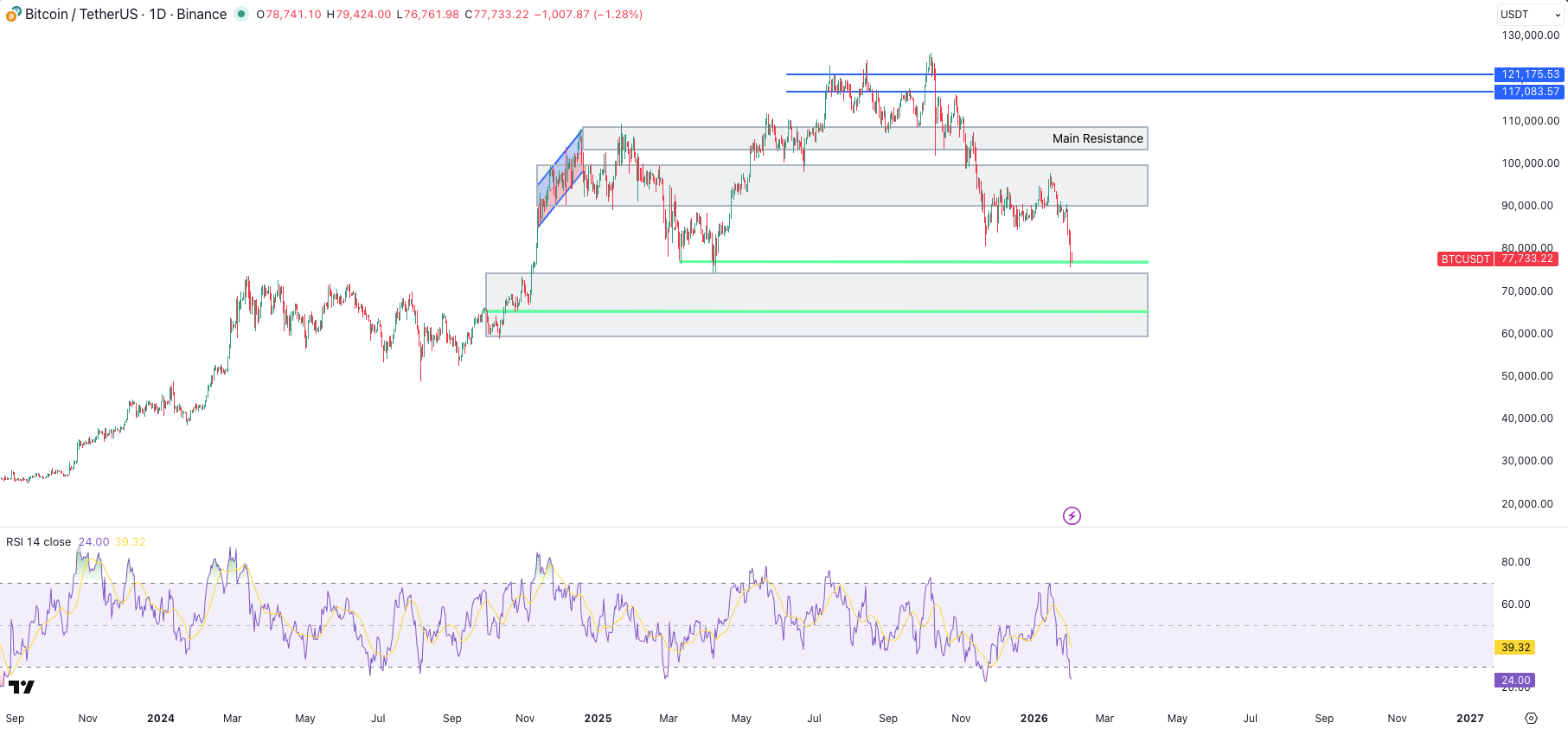 It was a challenging week for crypto markets, with Bitcoin breaking below the psychological $80,000 mark for the first time in nine months. BTC plunged to an intraday low around $76,000 before finding support and stabilising in the high-$70ks.