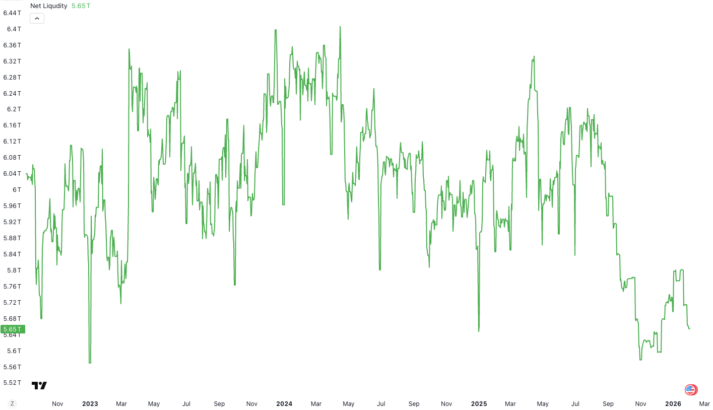 Meanwhile, net liquidity in the U.S. financial system continues to deteriorate. The Fed’s balance sheet runoff combined with increased Treasury cash balances reduced net liquidity from $5.8T (mid Jan) to $5.66T over the past two weeks. This contraction, driven by Treasury’s TGA rebuild, most likely ahead of government shutdown, is particularly negative for high-beta assets like crypto. Reduced liquidity removes a crucial tailwind that had supported price stability throughout 2026.
